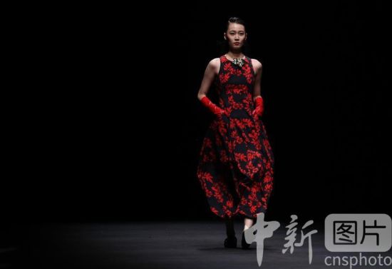 9月11日,模特在北京展示许村品牌时装。当日,“悦·界”许村时尚发布亮相中国国际时装周。 中新社记者 于海洋 摄