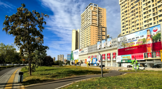 中新网辽宁新闻10月9日电 奋力建设“创新、宜居、美丽、韧性、文明、智慧”的现代化人民城市。近日,经常路过南京南街、会展路、创新路交叉口的市民发现,位于沈阳国际会展中心对面的奥园会展广场建筑外立面,破损陈旧、“破相”多年的广告位“焕然一新”,精心设计制作的大型城市建设公益广告、区域名优食品饮品广告,让市民“眼前一亮”,区域城市干道、人流密集区域城市“颜值”得到再提升。