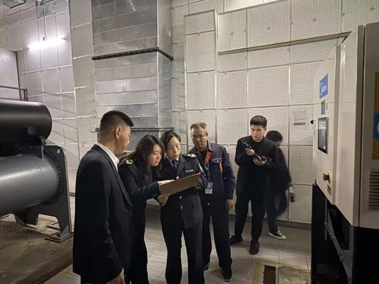 卫生执法人员深入设备间、管道层及建筑外部,对集中空调通风系统的“五官五脏”进行了细致勘查:重点检查新风口是否设置于清洁区域、有无防护网;送风口和回风口是否保持清洁,有无积尘、霉斑;对空气处理机组(如过滤器、表冷器、加热器、加湿器等)的运行状态、清洁度进行检查,确保其功能正常,无污染积聚。同时卫生技术人员对冷却塔中冷却水中的余氯含量进行了快速检测,确保有效抑制水中细菌繁殖,防止军团菌等致病微生物滋生与传播。