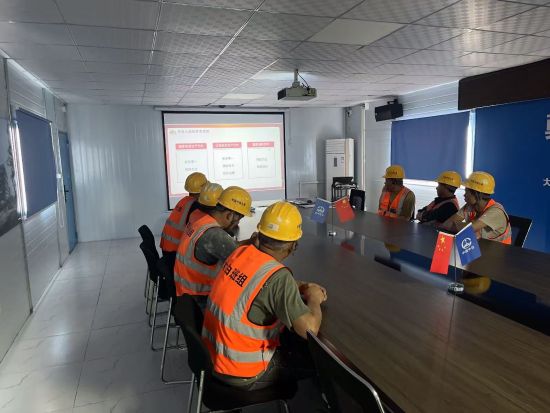 大连数谷项目设立班前讲评台,每日由各班组长进行班前安全教育,针对各个工点可能出现的安全事故隐患进行详细交底,对现场作业风险较大的施工班组重点培训,并签署每日班前安全交底文件。持续向施工人员灌输安全意识,使其时刻保持警惕,防止出现不安全行为。