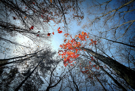 简介:作者聚焦秋日枫林的精神意象,以仰拍视角下红枫与疏枝、蓝天的交织,及飘落的枫叶,诠释自然生命在季节里的灵动与诗意张力。