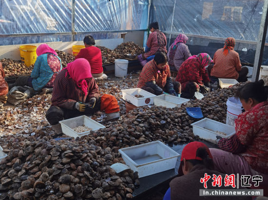 中新网辽宁新闻11月27日电 秋收过后本是农闲时节,但是在战可教的自家院子里,却呈现出一番火热的忙碌景象。一群妇女围坐在一起,手指翻飞间,一颗颗饱满的扇贝丁被熟练地剥离出来,欢声笑语交织,奏响了一曲生动的“增收曲”。
