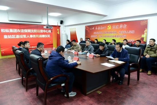 中新网辽宁新闻11月28日电 27日上午,一场以“科技赋能爱国拥军 专业助力普法惠军”为主题的公益捐赠活动在沈阳市皇姑区退役军人事务局成功举办。此次活动由皇姑区退役军人事务局牵头组织,联合皇姑区人民武装部、皇姑区法律援助中心、和纵集团、法保网沈阳AI智能法律运营中心共同开展,标志着皇姑区在探索“政企合作”社会化拥军新路径上迈出实质性步伐。