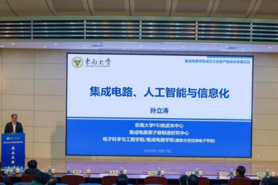 成立大会后,学校召开集成电路产教融合发展论坛。东南大学党委常委、副校长孙立涛以《集成电路、人工智能与信息化》为题作报告。拓荆科技股份有限公司副总裁孙丽杰以《铸“膜”强芯·协同育人·共绘辽宁集成电路产业新蓝图》为题作报告。
