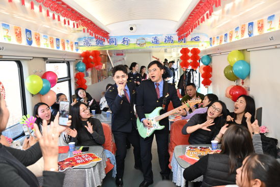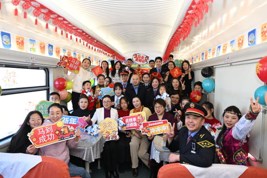K2623次“滨疆号”列车是连接“北方明珠”大连与“东亚之窗”满洲里的重要纽带,纵贯沈阳、长春、哈尔滨、海拉尔等多座城市,不仅承载着旅客团圆的期盼,也促进着两地文化交融与情感相连。春运首日,列车长刘森与乘警丁非凡共同主持活动,生动阐释“滨疆同行、连满同心”的服务理念,让旅客在旅途中深切感受列车文化与铁路人的暖心相伴。