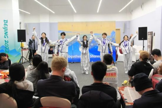 演出舞台上,专业文艺工作者与残疾人文艺骨干联袂献艺,节目精彩纷呈又饱含力量。《好运来》以欢快旋律拉开序幕,传递新春美好祝福;杂技《舞动人生》《攀登》展现不屈意志,与运动员们的拼搏精神同频共振;《红旗飘飘》《不忘初心》唱响家国情怀,激发奋进力量。现场互动环节更是暖意涌动,运动员代表岩巩与李想联袂登台,一曲《可可托海的牧羊人》唱出了坚守与牵挂;法国教练史蒂夫带来原汁原味的法语乡间民谣,独特旋律跨越语言隔阂,让现场充满跨国温情;工作人员代表董浩然、高博携手朗诵《如愿》,铿锵语调诉说着初心与担当,传递出同心筑梦的信念。手语舞蹈《逐梦生辉》用无声表达传递追梦信念,川剧变脸、互动魔术等节目增添了现场欢乐氛围,整场演出在全员参与的热烈氛围中推向高潮。演出间隙,小分队与集训队成员一同包饺子,欢声笑语中拉近了距离,让远离家乡的运动员们感受到“家” 的温暖,现场其乐融融。