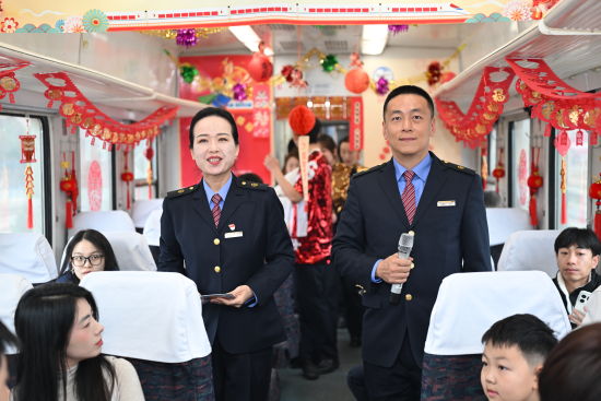 “我们用精心的车厢布置营造节日氛围,用真诚的人文服务传递家的温度,让旅客感受到年味满满,这是我们的服务初心,也是我们对‘人民铁路为人民’服务宗旨的坚守与承诺。”担当本次列车乘务工作的客运四队队长桑洪波说。