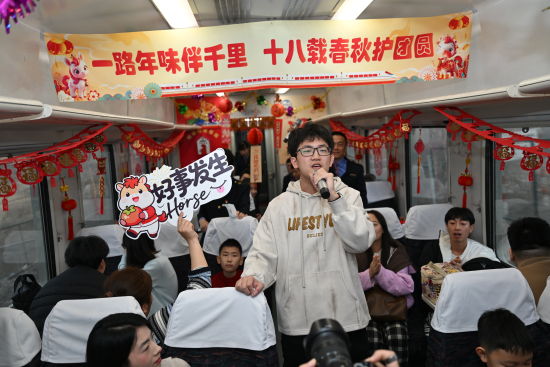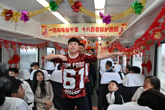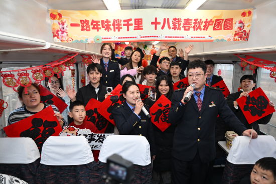 小年当天,大连客运段在列车上精心举办“一路年味伴千里 十八载春秋护团圆”主题活动。歌舞、灯谜、送福、互动游戏……车厢化作流动的“年味空间”,让漫长的归途变成了一场温馨的聚会。