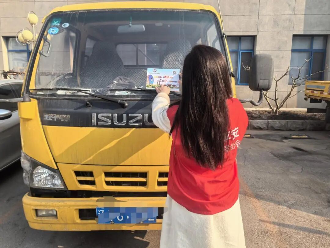 随后,志愿者们深入车队,为多辆货运车辆粘贴高亮度反光贴,在细微处入手,帮助提升车辆在夜间和恶劣天气下的辨识度,切实为司机师傅们的出行安全增添一份保障,展现了金融行业利用实际行动精准满足群众需求的惠民举措。