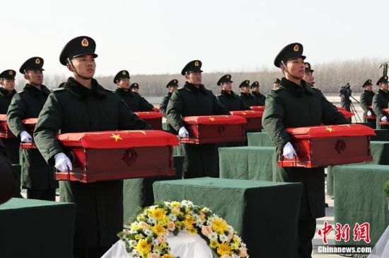 11月28日,第十一批在韩中国人民志愿军烈士遗骸回到祖国母亲的怀抱,43位志愿军烈士英灵及495件遗物由中国空军运-20专机从韩国接回并护送至辽宁沈阳。中新社记者 于海洋 摄