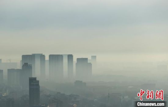 12月16日,沈阳上空被“大雾迷城”,城市建筑若隐若现,宛如仙境。中新社记者 于海洋 摄