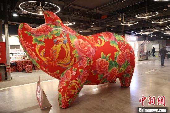 1月13日,东北大花“猪”现身沈阳,时尚又接地气体现别样风情,吸引众多市民前来打卡拍照。图为东北大花“猪”。中新社记者 于海洋 摄