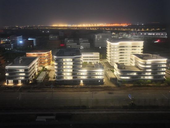 灯光不仅是照明,也是建筑的表情。科技城智能化亮化工程以营造科技动感园区的理念为核心,形成中轴线辐射周边建筑的夜景美感,采用面光为基础的灯光元素,各种呼吸效果、明暗变化表达主题,覆盖建筑外立面。