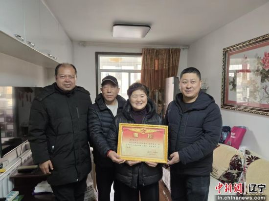 中新网辽宁新闻12月10日电 12月10日上午,沈阳市于洪区退役军人事务局联合迎宾路街道办事处组成“报喜团”,带着党和政府的关怀与敬意,专程前往辖区现役军人崔希鹏家中,举行二等功喜报送达仪式,让军人军属共享这份至高荣光,在全社会营造 “一人立功、全家光荣” 的浓厚崇军氛围。