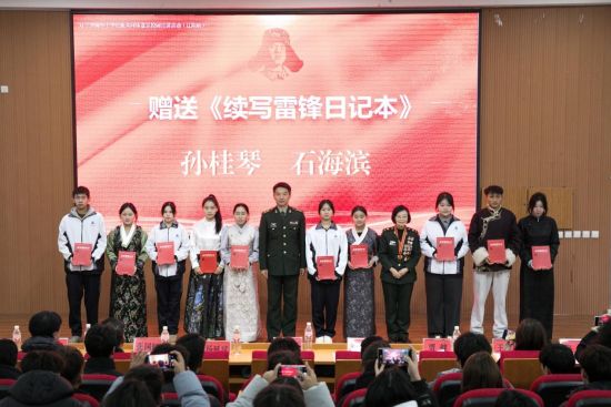 杨延斌为孙桂琴、石海滨两位嘉宾颁发校外辅导员聘书,为辽阳职业技术学院传承雷锋精神、深化民族团结教育注入力量。红色旗帜引方向,精神薪火永相传。石海滨、孙桂琴为学校铸牢中华民族共同体意识雷锋朗诵团授旗,并向各民族学生代表赠送《续写雷锋日记本》,为传承精神赋予了具象载体。
