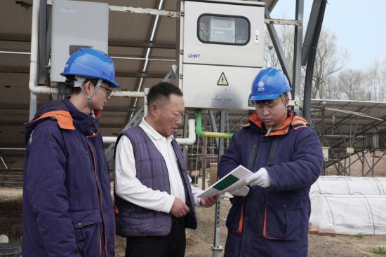 国网沈阳供电公司工作人员走进康平县光伏用户闻庆芝家中,为其检查光伏发电设备运行情况,并讲解安全用电知识。(张怡飞)